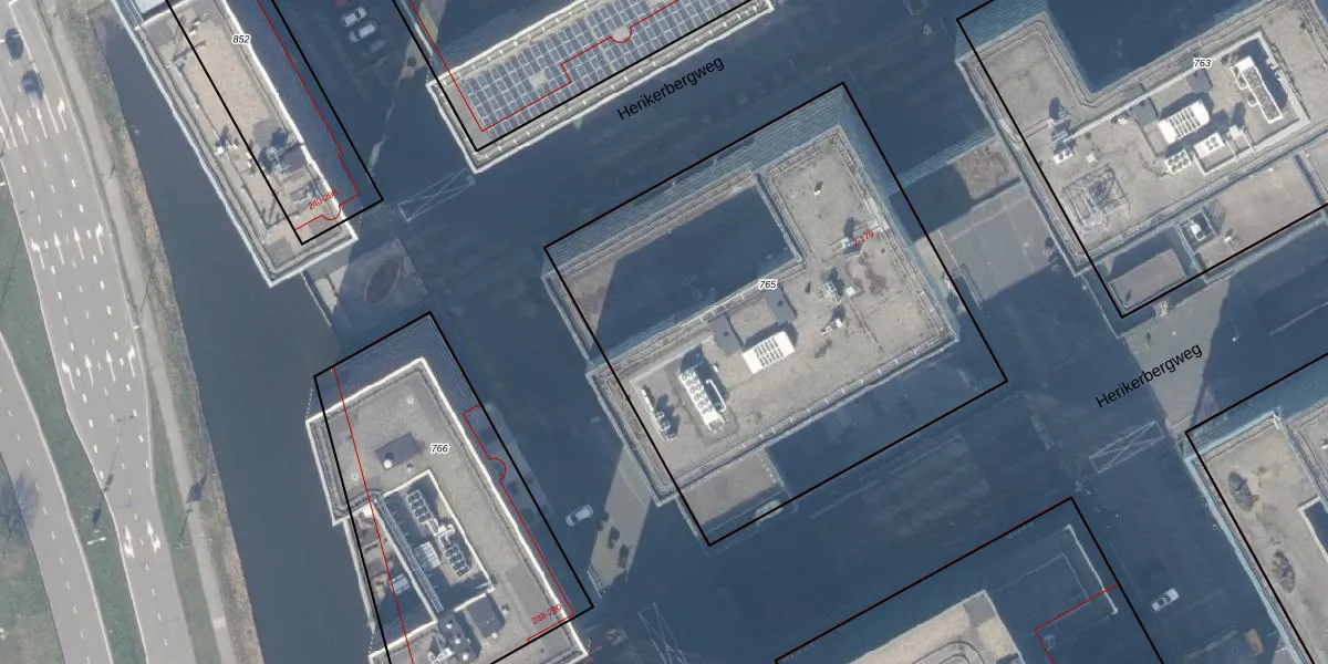 Herikerbergweg 175 is gelegen op kadastraal perceel WPK02M765. Deze kadastrale aanduiding is uniek en wordt gebruikt door het Kadaster om eigendomsrechten en andere zakelijke rechten vast te leggen. Het perceel maakt onderdeel uit van de kadastrale gemeente Weesperkarspel.