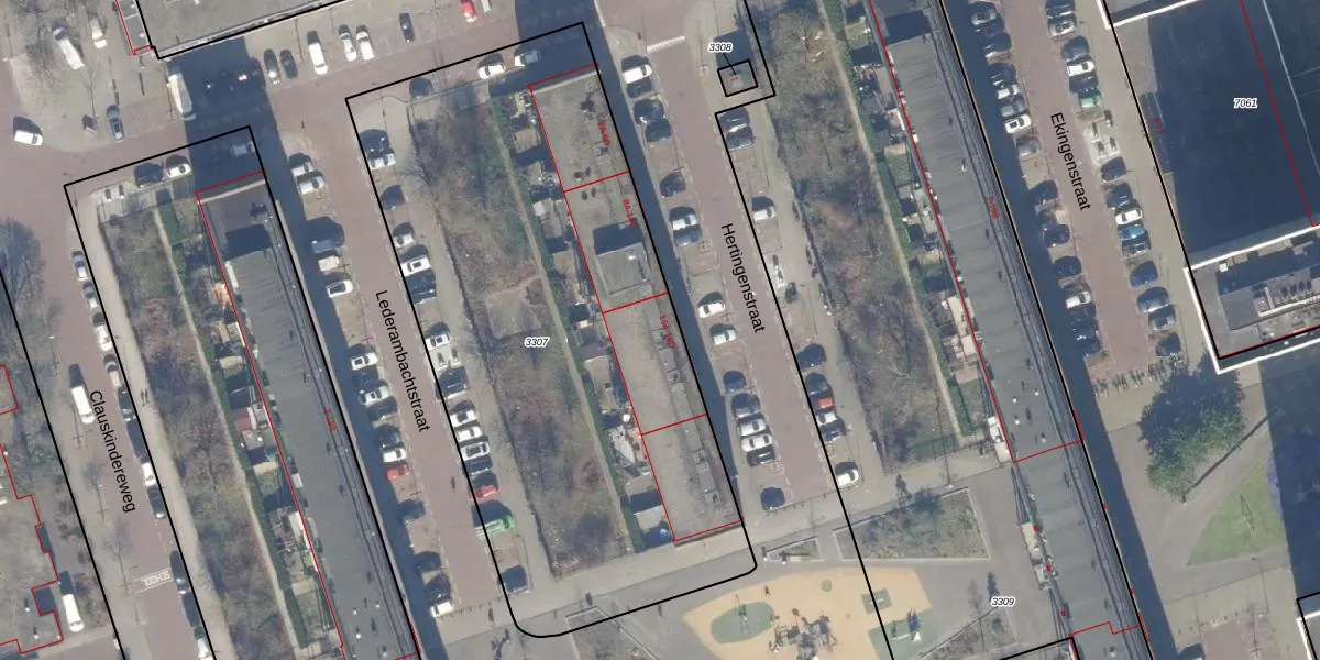 Het perceel waarop Hertingenstraat 16-B staat heeft een oppervlakte van 3250 m². Dit is een zeer groot perceel. De perceeloppervlakte wordt geregistreerd door het Kadaster. Gedetailleerde informatie over de maten van dit perceel kunt u vinden in het rapport Kadastrale kaart met maatvoering van Hertingenstraat 16-B.