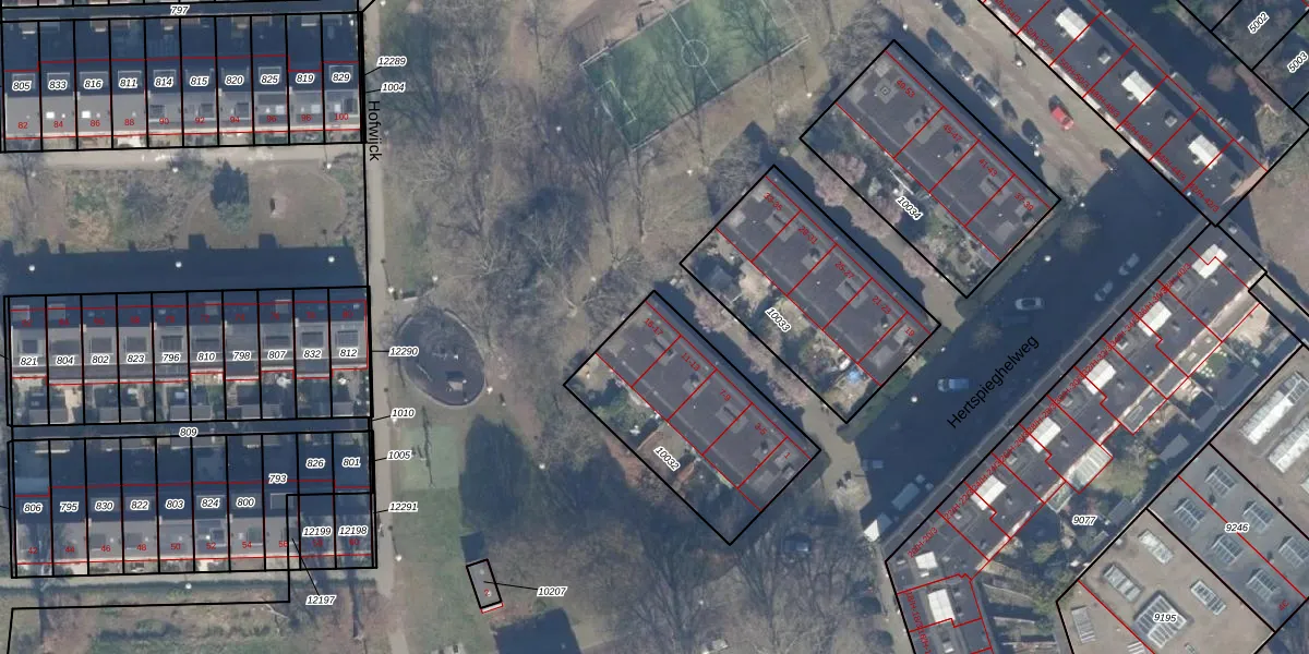 Het perceel waarop Hertspieghelweg 15 staat heeft een oppervlakte van 707 m². Dit is een groot perceel. De perceeloppervlakte wordt geregistreerd door het Kadaster. Gedetailleerde informatie over de maten van dit perceel kunt u vinden in het rapport Kadastrale kaart met maatvoering van Hertspieghelweg 15.