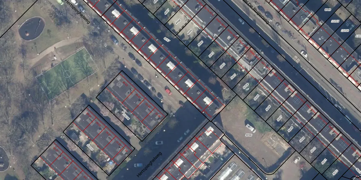 Het perceel waarop Hertspieghelweg 48-H staat heeft een oppervlakte van 1782 m². Dit is een zeer groot perceel. De perceeloppervlakte wordt geregistreerd door het Kadaster. Gedetailleerde informatie over de maten van dit perceel kunt u vinden in het rapport Kadastrale kaart met maatvoering van Hertspieghelweg 48-H.