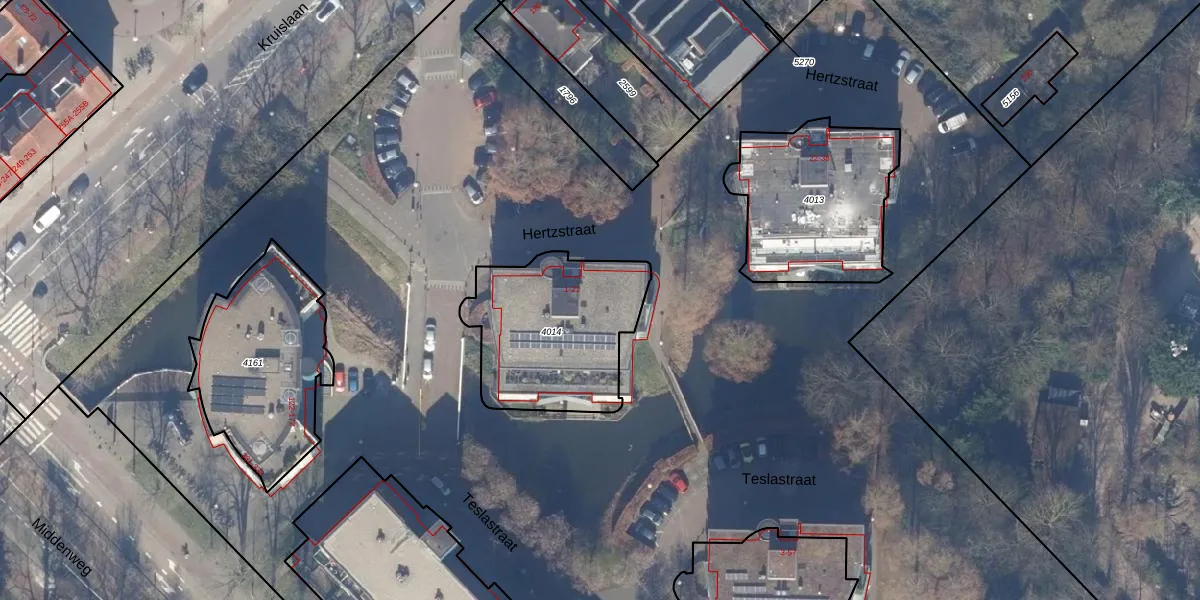Het perceel waarop Hertzstraat 15 staat heeft een oppervlakte van 640 m². Dit is een groot perceel. De perceeloppervlakte wordt geregistreerd door het Kadaster. Gedetailleerde informatie over de maten van dit perceel kunt u vinden in het rapport Kadastrale kaart met maatvoering van Hertzstraat 15.
