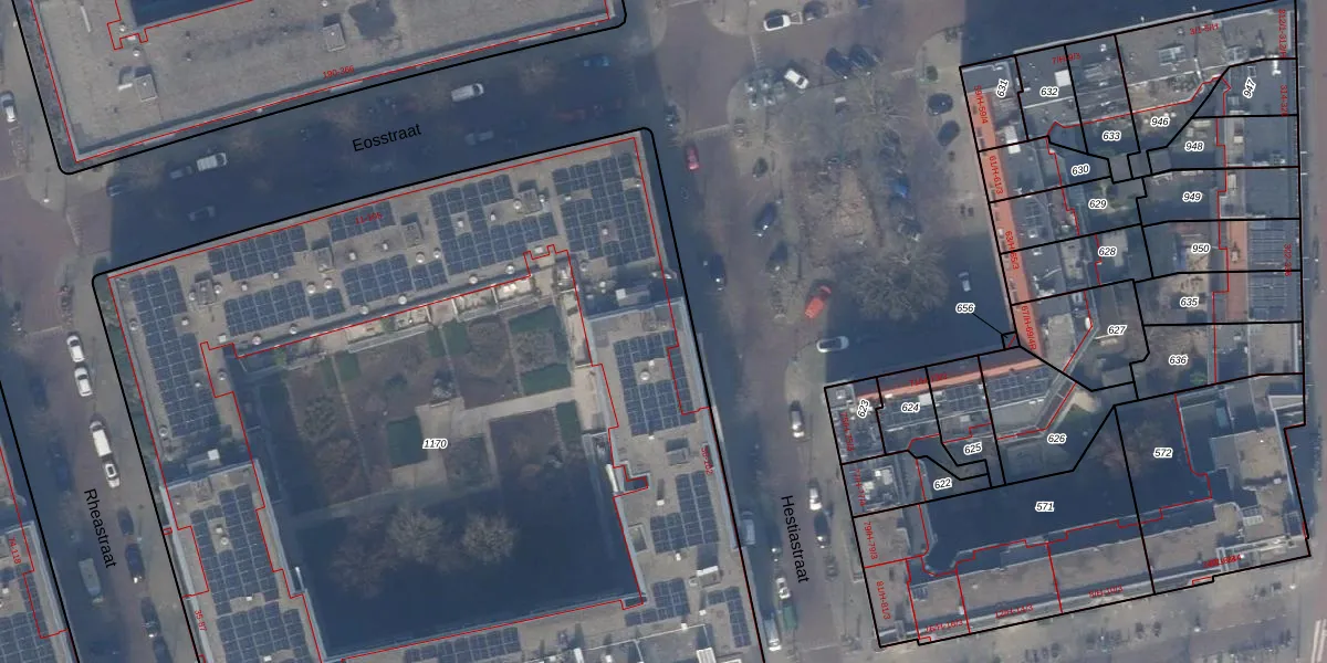 Het perceel waarop Hestiastraat 36 staat heeft een oppervlakte van 7035 m². Dit is een zeer groot perceel. De perceeloppervlakte wordt geregistreerd door het Kadaster. Gedetailleerde informatie over de maten van dit perceel kunt u vinden in het rapport Kadastrale kaart met maatvoering van Hestiastraat 36.