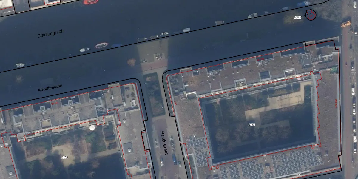 Hestiastraat 45 is gelegen op kadastraal perceel ASD24AC1165. Deze kadastrale aanduiding is uniek en wordt gebruikt door het Kadaster om eigendomsrechten en andere zakelijke rechten vast te leggen. Het perceel maakt onderdeel uit van de kadastrale gemeente Amsterdam.