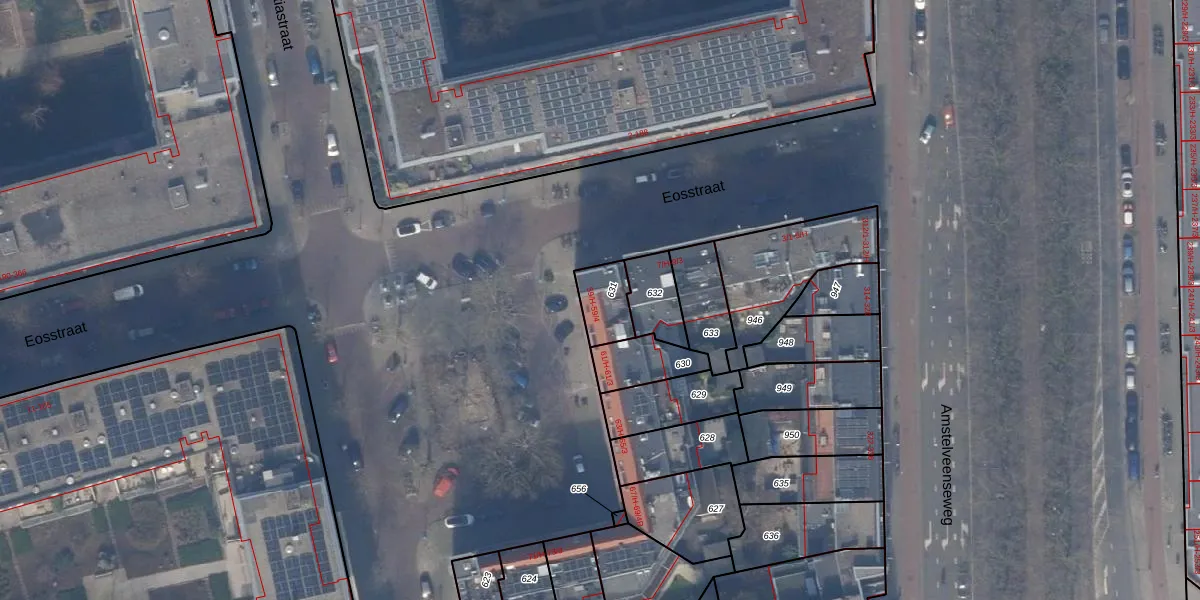 Het adres ligt op het perceel ASD24-AC-631, dat zich in de kadastrale gemeente Amsterdam bevindt. De gemiddelde perceelgrootte in Amsterdam is 1365,99 m². Dit perceel is kleiner: de perceeloppervlakte bedraagt 100 m². Het kleinste perceel in de kadastrale gemeente is 1 m² groot. De grootste perceeloppervlakte is 11,7 ha. Er zijn 5 adressen aanwezig op het perceel. In de Basisregistratie Kadaster (BRK) werden de grenzen van het perceel geregistreerd op 18-12-2006.