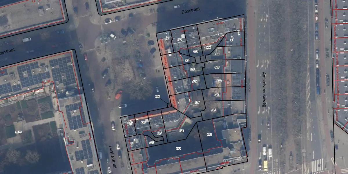 Hestiastraat 65-H is gelegen op kadastraal perceel ASD24AC628. Deze kadastrale aanduiding is uniek en wordt gebruikt door het Kadaster om eigendomsrechten en andere zakelijke rechten vast te leggen. Het perceel maakt onderdeel uit van de kadastrale gemeente Amsterdam.