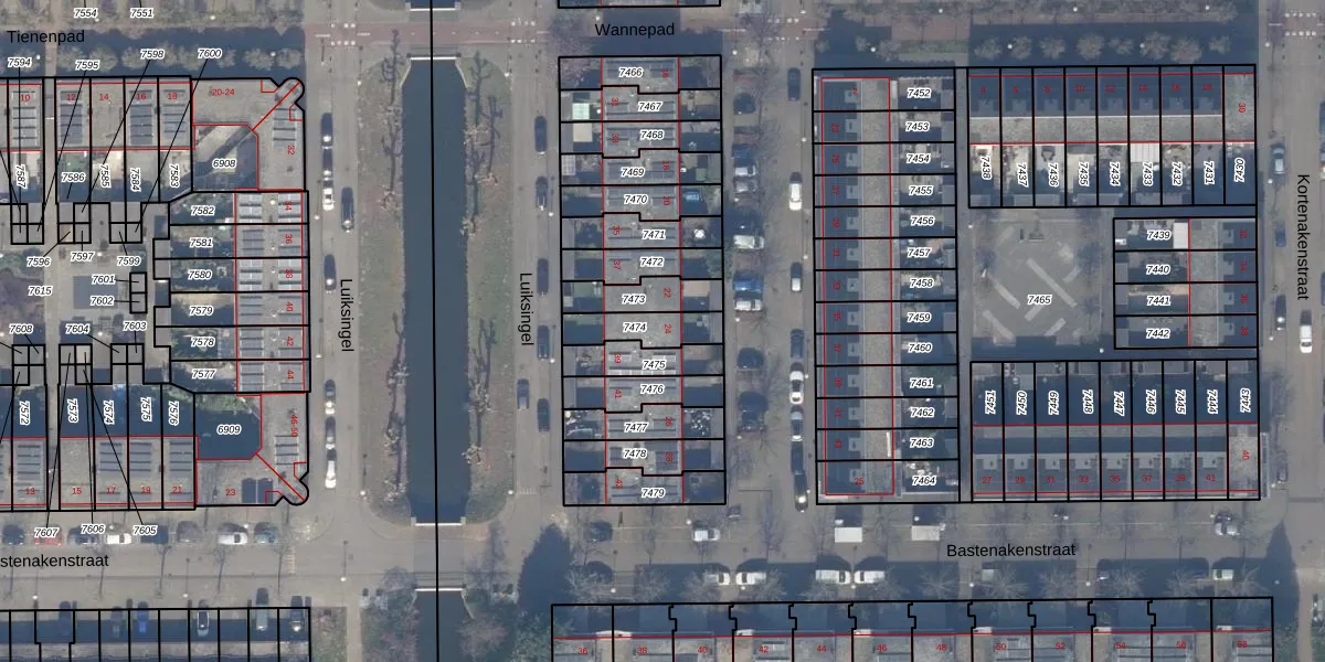 Gebruik de zoekbalk of klik op een perceel voor informatie over de adressen binnen dit perceel.
