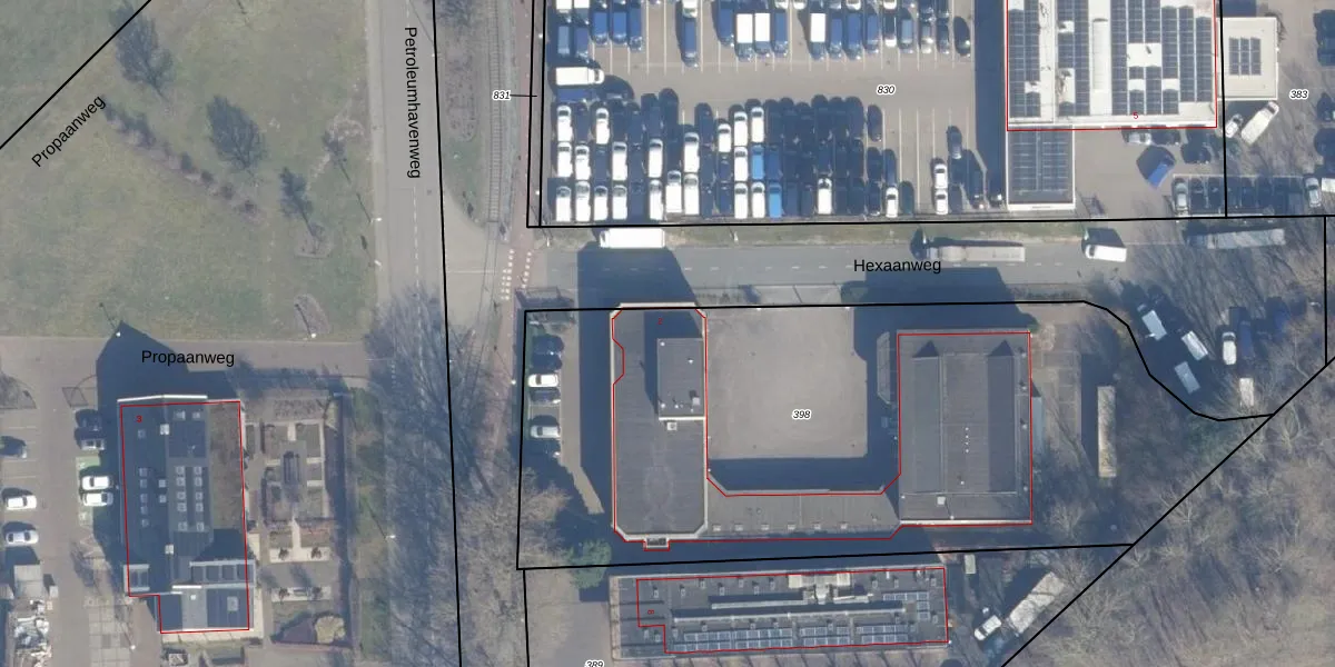 Het perceel waarop Hexaanweg 2 staat heeft een oppervlakte van 3643 m². Dit is een zeer groot perceel. De perceeloppervlakte wordt geregistreerd door het Kadaster. Gedetailleerde informatie over de maten van dit perceel kunt u vinden in het rapport Kadastrale kaart met maatvoering van Hexaanweg 2.