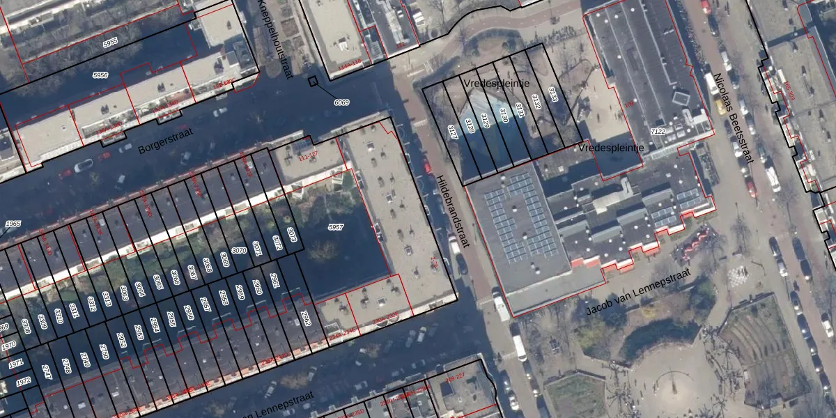 Het perceel waarop Hildebrandstraat 42 staat heeft een oppervlakte van 1500 m². Dit is een zeer groot perceel. De perceeloppervlakte wordt geregistreerd door het Kadaster. Gedetailleerde informatie over de maten van dit perceel kunt u vinden in het rapport Kadastrale kaart met maatvoering van Hildebrandstraat 42.