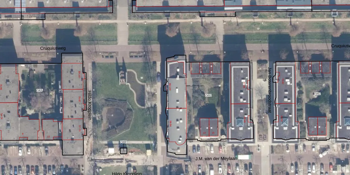 Hildo Kropplein 102 is gelegen op kadastraal perceel ASD02A7491. Deze kadastrale aanduiding is uniek en wordt gebruikt door het Kadaster om eigendomsrechten en andere zakelijke rechten vast te leggen. Het perceel maakt onderdeel uit van de kadastrale gemeente Amsterdam.