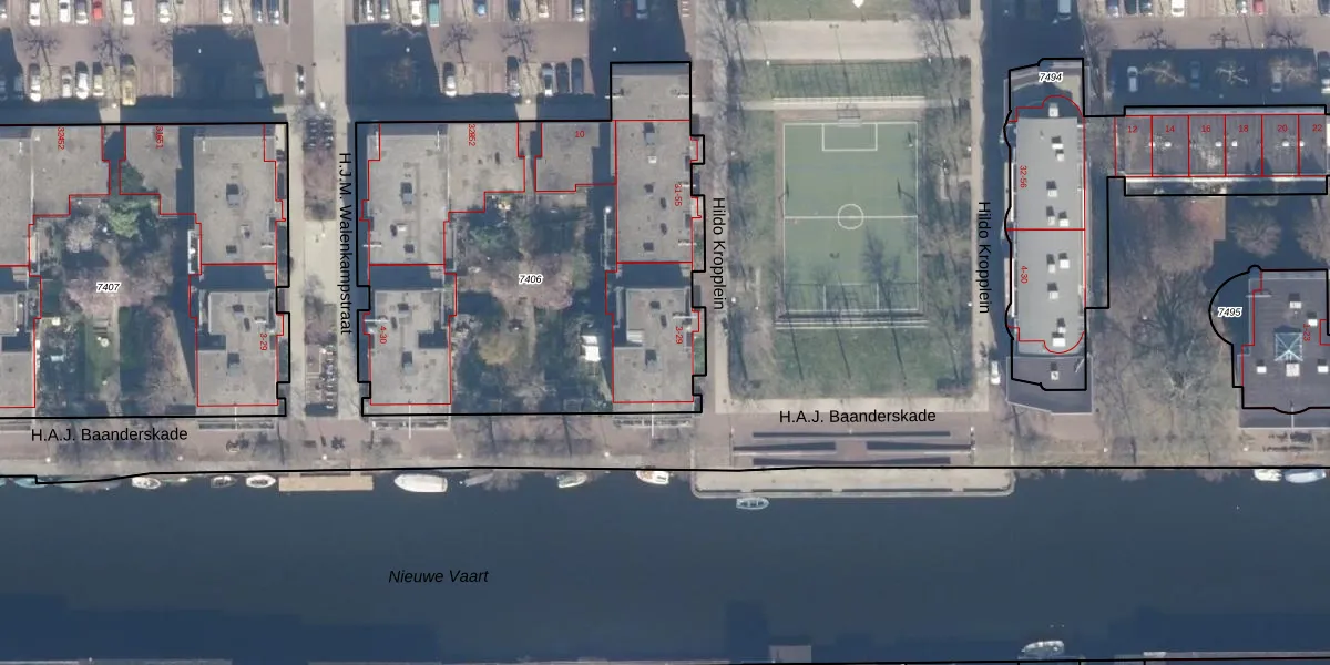 Het adres is gelegen op perceel 7406 in de sectie A en de kadastrale gemeente Amsterdam. De kadastrale aanduiding is aldus ASD02-A-7406. Het perceel is kleiner dan gemiddeld in Amsterdam. Het perceel is 2359 m² groot, terwijl het gemiddelde ligt op 2763,93 m². De grootste perceeloppervlakte in de kadastrale gemeente is 14,3 ha. De kleinste oppervlakte bedraagt 0 m². Er zijn 54 adressen aanwezig op het perceel. In de Basisregistratie Kadaster (BRK) werden de grenzen van het perceel geregistreerd op 24-10-2007.