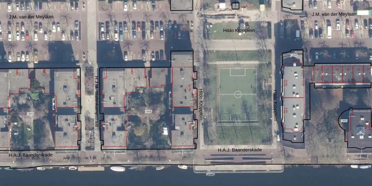 Hildo Kropplein 35 is gelegen op kadastraal perceel ASD02A7406. Deze kadastrale aanduiding is uniek en wordt gebruikt door het Kadaster om eigendomsrechten en andere zakelijke rechten vast te leggen. Het perceel maakt onderdeel uit van de kadastrale gemeente Amsterdam.
