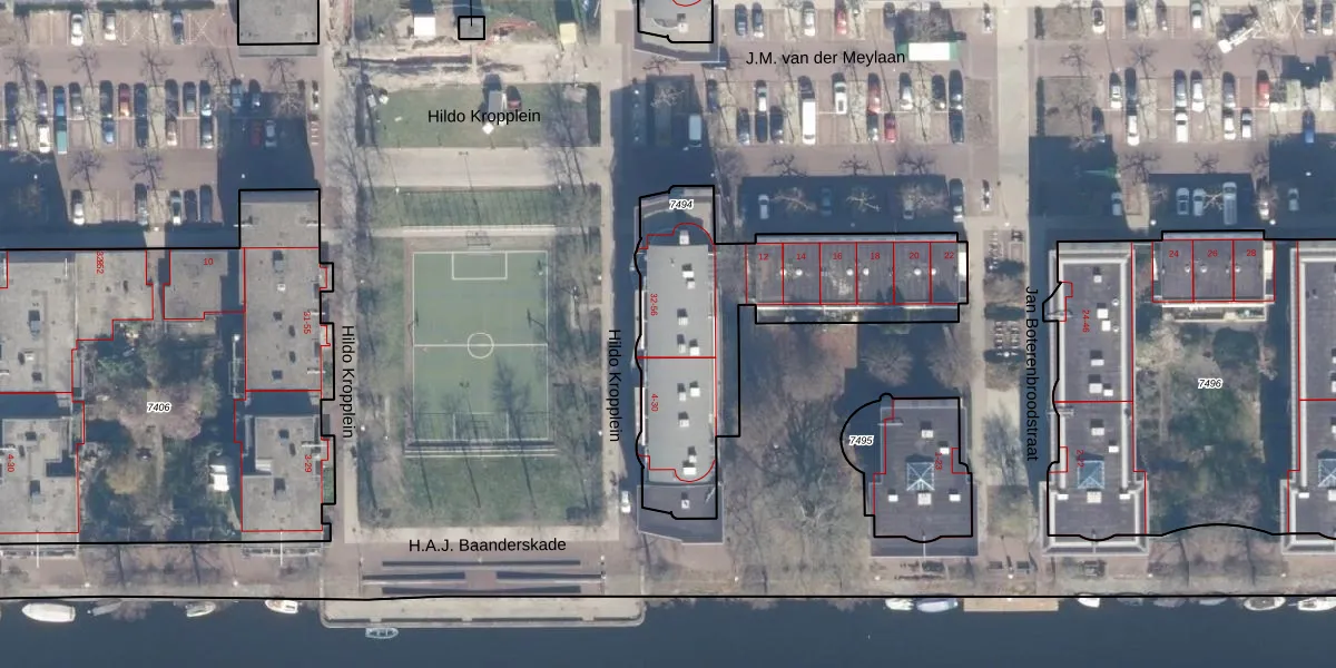 Hildo Kropplein 36 is gelegen op kadastraal perceel ASD02A7494. Deze kadastrale aanduiding is uniek en wordt gebruikt door het Kadaster om eigendomsrechten en andere zakelijke rechten vast te leggen. Het perceel maakt onderdeel uit van de kadastrale gemeente Amsterdam.