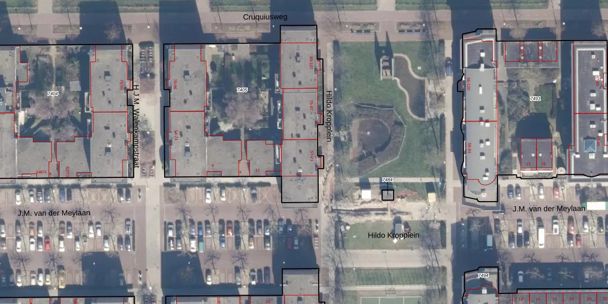Hildo Kropplein 73 is gelegen op kadastraal perceel ASD02A7405. Deze kadastrale aanduiding is uniek en wordt gebruikt door het Kadaster om eigendomsrechten en andere zakelijke rechten vast te leggen. Het perceel maakt onderdeel uit van de kadastrale gemeente Amsterdam.