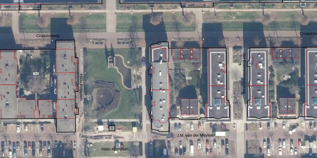 Hildo Kropplein 92 is gelegen op kadastraal perceel ASD02A7491. Deze kadastrale aanduiding is uniek en wordt gebruikt door het Kadaster om eigendomsrechten en andere zakelijke rechten vast te leggen. Het perceel maakt onderdeel uit van de kadastrale gemeente Amsterdam.