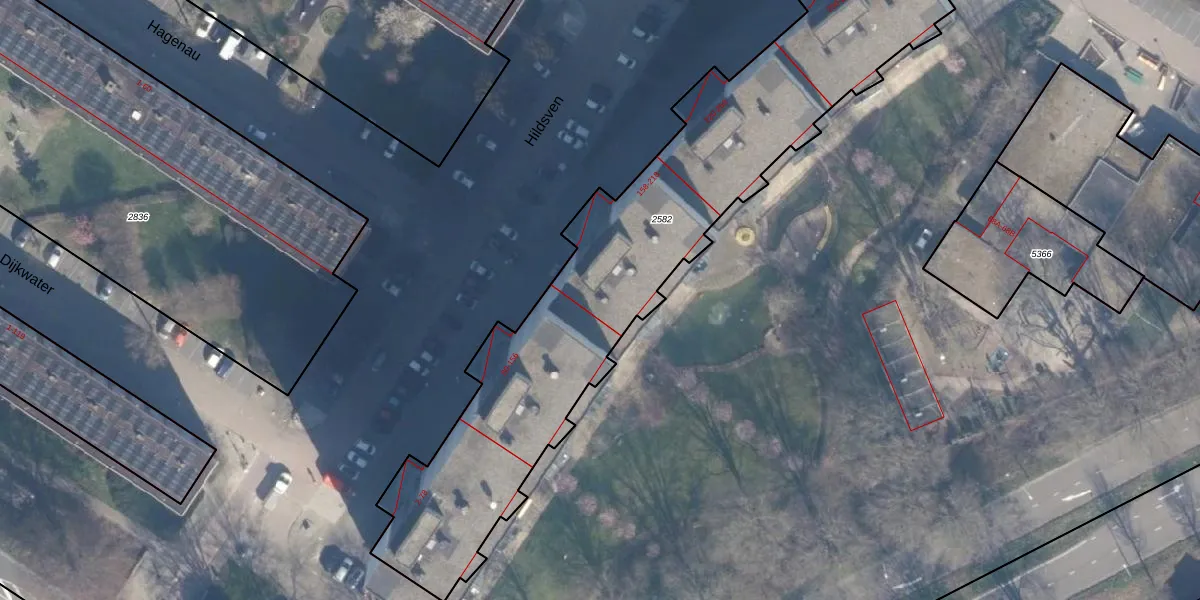 Het perceel waarop Hildsven 206 staat heeft een oppervlakte van 2245 m². Dit is een zeer groot perceel. De perceeloppervlakte wordt geregistreerd door het Kadaster. Gedetailleerde informatie over de maten van dit perceel kunt u vinden in het rapport Kadastrale kaart met maatvoering van Hildsven 206.