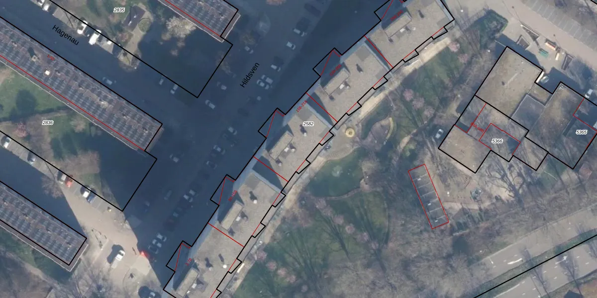 Het perceel waarop Hildsven 212 staat heeft een oppervlakte van 2245 m². Dit is een zeer groot perceel. De perceeloppervlakte wordt geregistreerd door het Kadaster. Gedetailleerde informatie over de maten van dit perceel kunt u vinden in het rapport Kadastrale kaart met maatvoering van Hildsven 212.