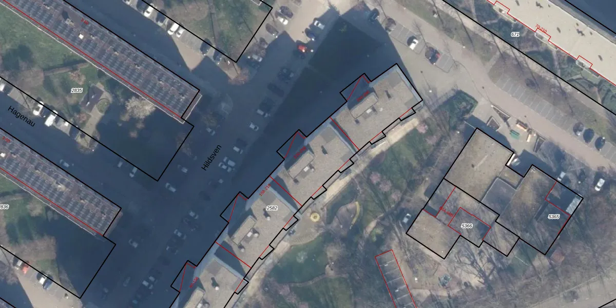 Het perceel waarop Hildsven 232 staat heeft een oppervlakte van 2245 m². Dit is een zeer groot perceel. De perceeloppervlakte wordt geregistreerd door het Kadaster. Gedetailleerde informatie over de maten van dit perceel kunt u vinden in het rapport Kadastrale kaart met maatvoering van Hildsven 232.