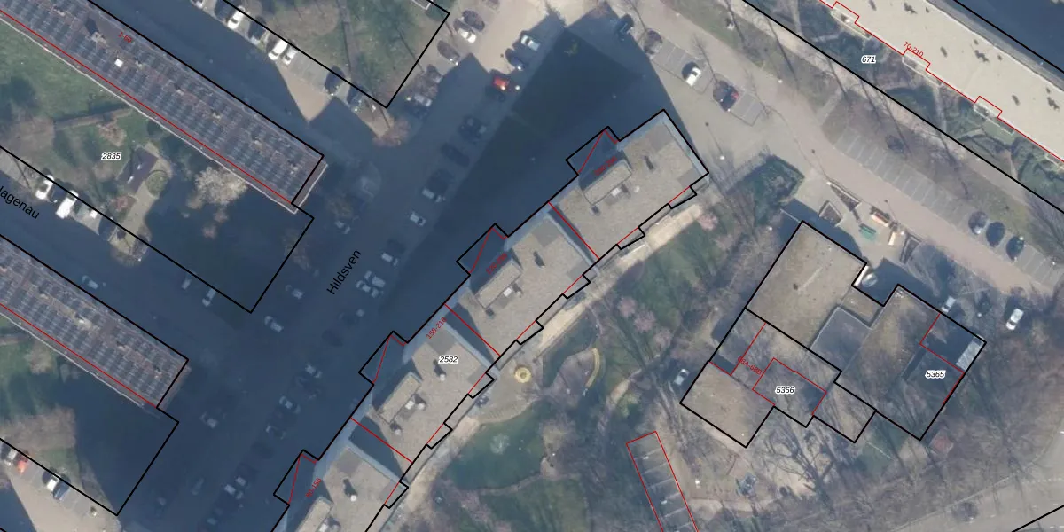 Het perceel waarop Hildsven 250 staat heeft een oppervlakte van 2245 m². Dit is een zeer groot perceel. De perceeloppervlakte wordt geregistreerd door het Kadaster. Gedetailleerde informatie over de maten van dit perceel kunt u vinden in het rapport Kadastrale kaart met maatvoering van Hildsven 250.