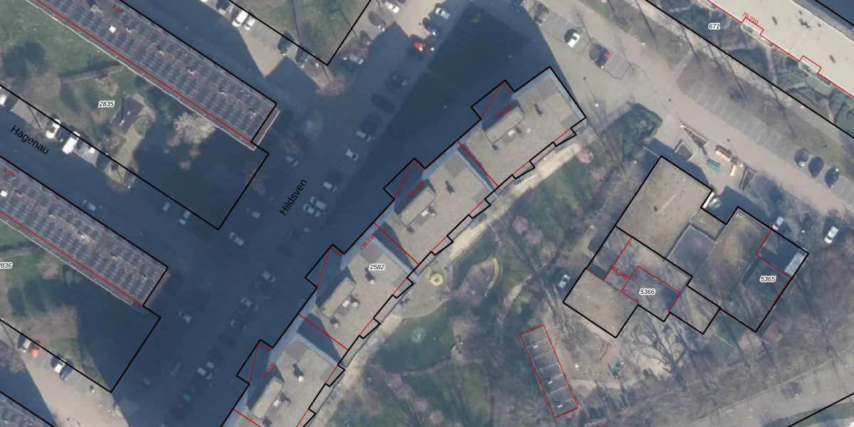 Het perceel waarop Hildsven 256 staat heeft een oppervlakte van 2245 m². Dit is een zeer groot perceel. De perceeloppervlakte wordt geregistreerd door het Kadaster. Gedetailleerde informatie over de maten van dit perceel kunt u vinden in het rapport Kadastrale kaart met maatvoering van Hildsven 256.