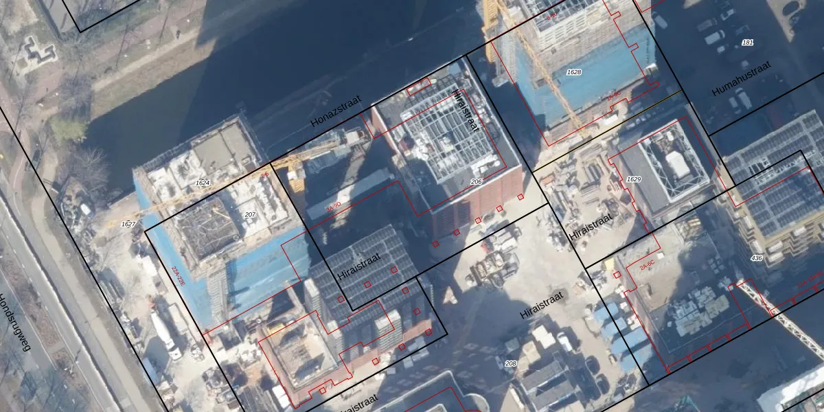 Het perceel waarop Hiraistraat 9-B-26 staat heeft een oppervlakte van 2187 m². Dit is een zeer groot perceel. De perceeloppervlakte wordt geregistreerd door het Kadaster. Gedetailleerde informatie over de maten van dit perceel kunt u vinden in het rapport Kadastrale kaart met maatvoering van Hiraistraat 9-B-26.