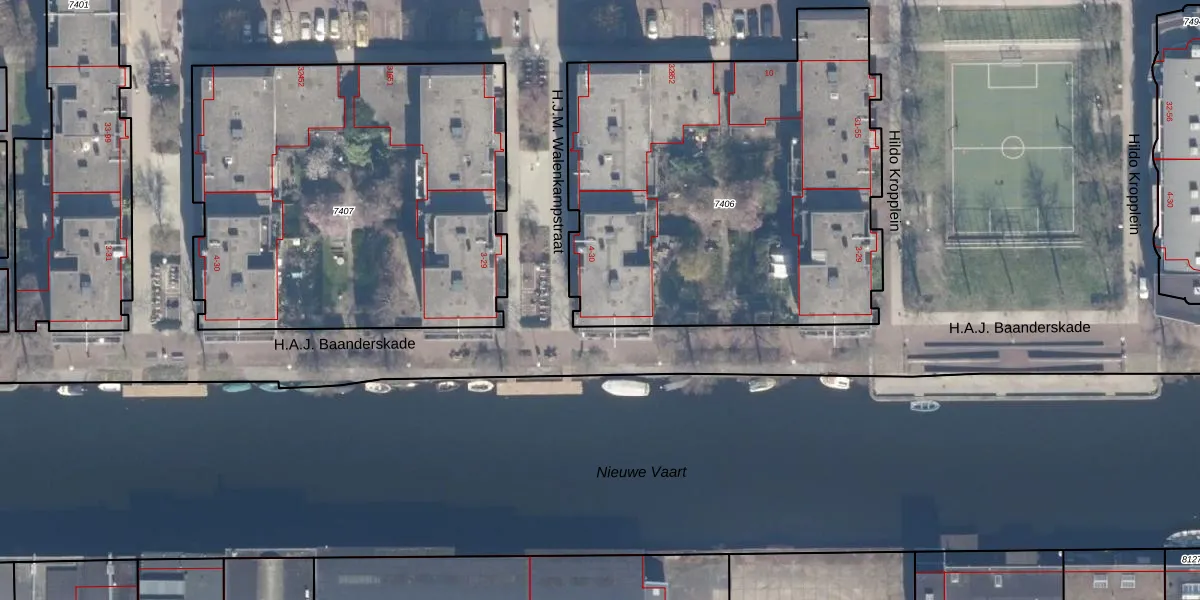 Het adres is gelegen op perceel 7406 in de sectie A en de kadastrale gemeente Amsterdam. De kadastrale aanduiding is aldus ASD02-A-7406. Het perceel is kleiner dan gemiddeld in Amsterdam. Het perceel is 2359 m² groot, terwijl het gemiddelde ligt op 2763,93 m². De grootste perceeloppervlakte in de kadastrale gemeente is 14,3 ha. De kleinste oppervlakte bedraagt 0 m². Er zijn 54 adressen aanwezig op het perceel. In de Basisregistratie Kadaster (BRK) werden de grenzen van het perceel geregistreerd op 24-10-2007.