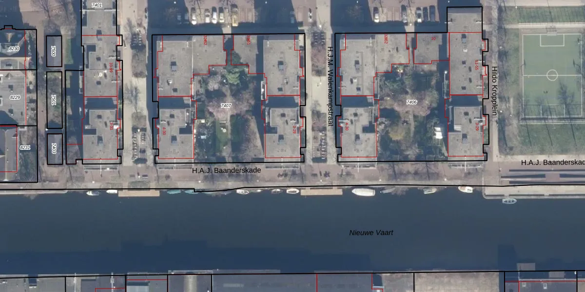 Het adres is gelegen op perceel 7407 in de sectie A en de kadastrale gemeente Amsterdam. De kadastrale aanduiding is aldus ASD02-A-7407. Het perceel is 2273 m² groot. Dat is kleiner dan de gemiddelde perceeloppervlakte in Amsterdam, dat op 2763,93 m² ligt. Het kleinste perceel in de kadastrale gemeente is 0 m² groot. De grootste perceeloppervlakte is 14,3 ha. Er zijn 52 adressen aanwezig op het perceel. De huidige grenzen van het perceel zijn digitaal in de Basisregistratie Kadaster (BRK) geregistreerd op 24-10-2007.