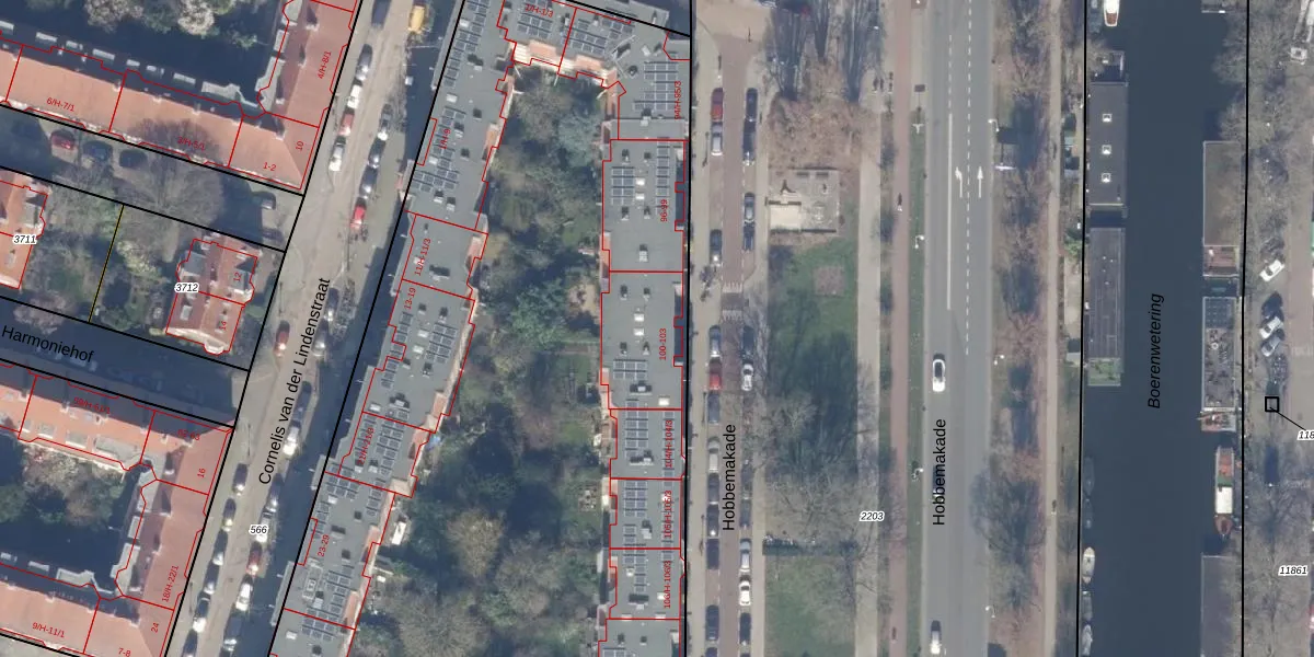 Het perceel waarop Hobbemakade 101-3 staat heeft een oppervlakte van 8900 m². Dit is een zeer groot perceel. De perceeloppervlakte wordt geregistreerd door het Kadaster. Gedetailleerde informatie over de maten van dit perceel kunt u vinden in het rapport Kadastrale kaart met maatvoering van Hobbemakade 101-3.