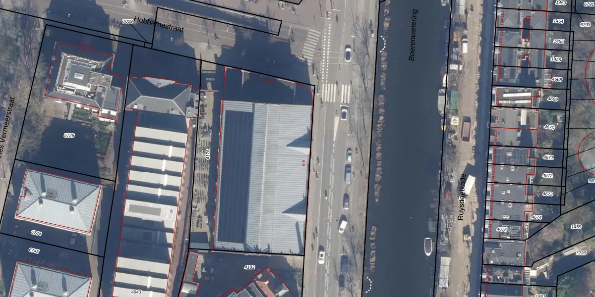Het perceel waarop Hobbemakade 6 staat heeft een oppervlakte van 2314 m². Dit is een zeer groot perceel. De perceeloppervlakte wordt geregistreerd door het Kadaster. Gedetailleerde informatie over de maten van dit perceel kunt u vinden in het rapport Kadastrale kaart met maatvoering van Hobbemakade 6.