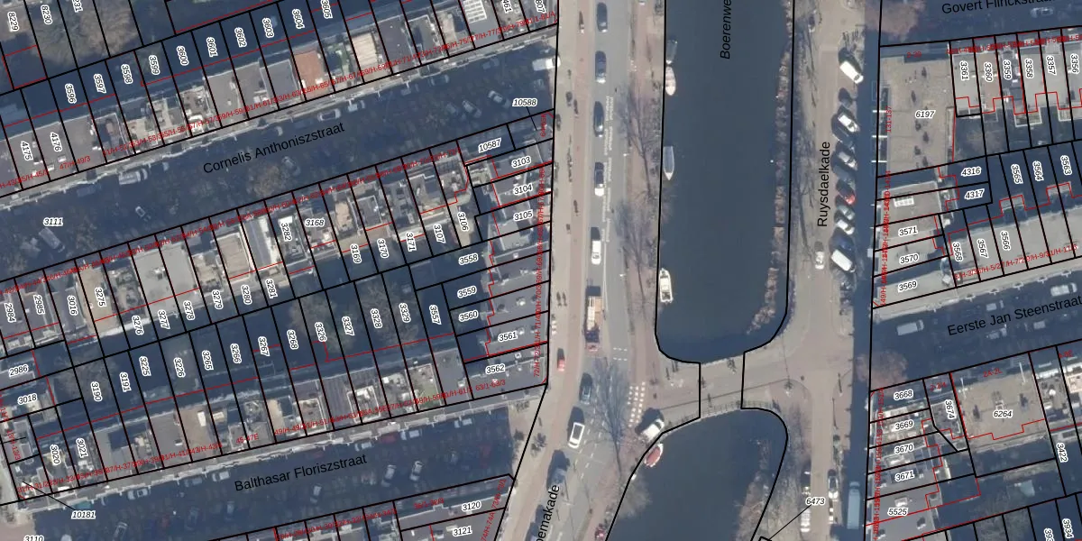 Het adres ligt op het perceel ASD17-U-3559, dat zich in de kadastrale gemeente Amsterdam bevindt. De gemiddelde perceelgrootte in Amsterdam is 394,52 m². Dit perceel is kleiner: de perceeloppervlakte bedraagt 106 m². Het kleinste perceel in de kadastrale gemeente is 0 m² groot. De grootste perceeloppervlakte is 22,9 ha. Op het perceel zijn 4 adressen aanwezig. In de Basisregistratie Kadaster (BRK) werden de grenzen van het perceel geregistreerd op 25-01-2007.