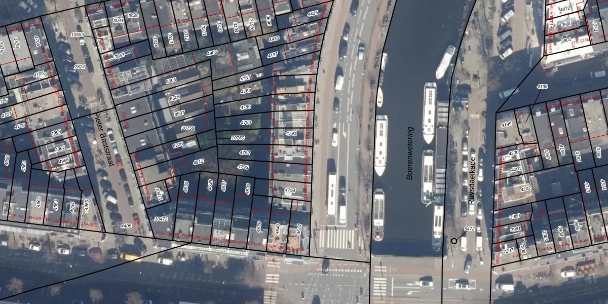 Het adres ligt op het perceel ASD17-U-4792, dat zich in de kadastrale gemeente Amsterdam bevindt. De gemiddelde perceelgrootte in Amsterdam is 394,52 m². Dit perceel is kleiner: de perceeloppervlakte bedraagt 167 m². De grootste perceeloppervlakte in de kadastrale gemeente is 22,9 ha. De kleinste oppervlakte bedraagt 0 m². Op het perceel zijn 5 adressen aanwezig. De laatste wijziging in het de Basisregistratie Kadaster (BRK) was op 25-01-2007.