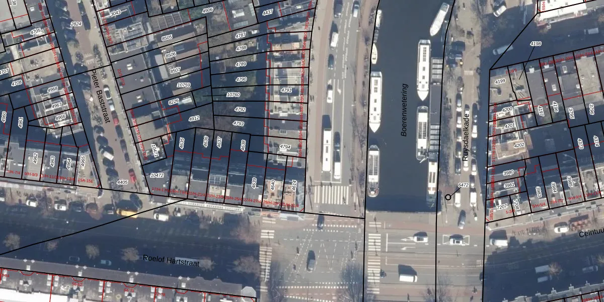 Het adres ligt op het perceel ASD17-U-4794, dat zich in de kadastrale gemeente Amsterdam bevindt. De gemiddelde perceelgrootte in Amsterdam is 394,52 m². Dit perceel is kleiner: de perceeloppervlakte bedraagt 112 m². De grootste perceeloppervlakte in de kadastrale gemeente is 22,9 ha. De kleinste oppervlakte bedraagt 0 m². Op het perceel zijn 6 adressen aanwezig. In de Basisregistratie Kadaster (BRK) werden de grenzen van het perceel geregistreerd op 25-01-2007.