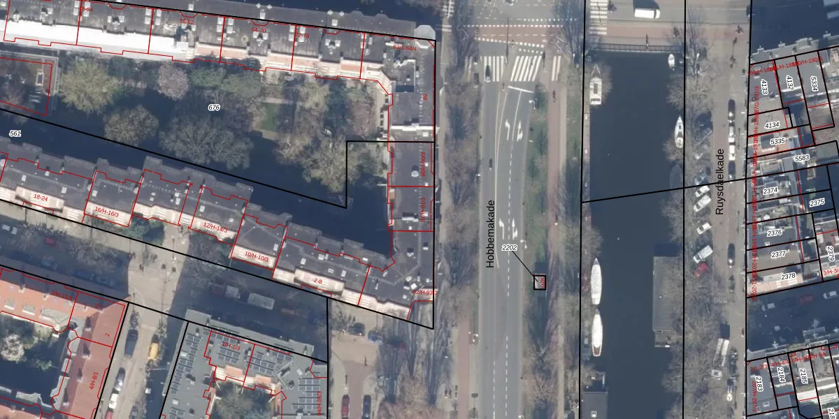 Het perceel waarop Hobbemakade 91-1 staat heeft een oppervlakte van 4295 m². Dit is een zeer groot perceel. De perceeloppervlakte wordt geregistreerd door het Kadaster. Gedetailleerde informatie over de maten van dit perceel kunt u vinden in het rapport Kadastrale kaart met maatvoering van Hobbemakade 91-1.