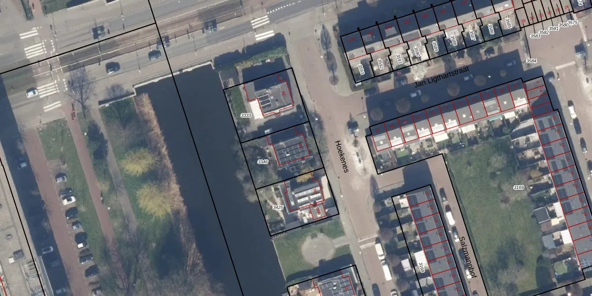 Gebruik de zoekbalk of klik op een perceel voor informatie over de adressen binnen dit perceel.