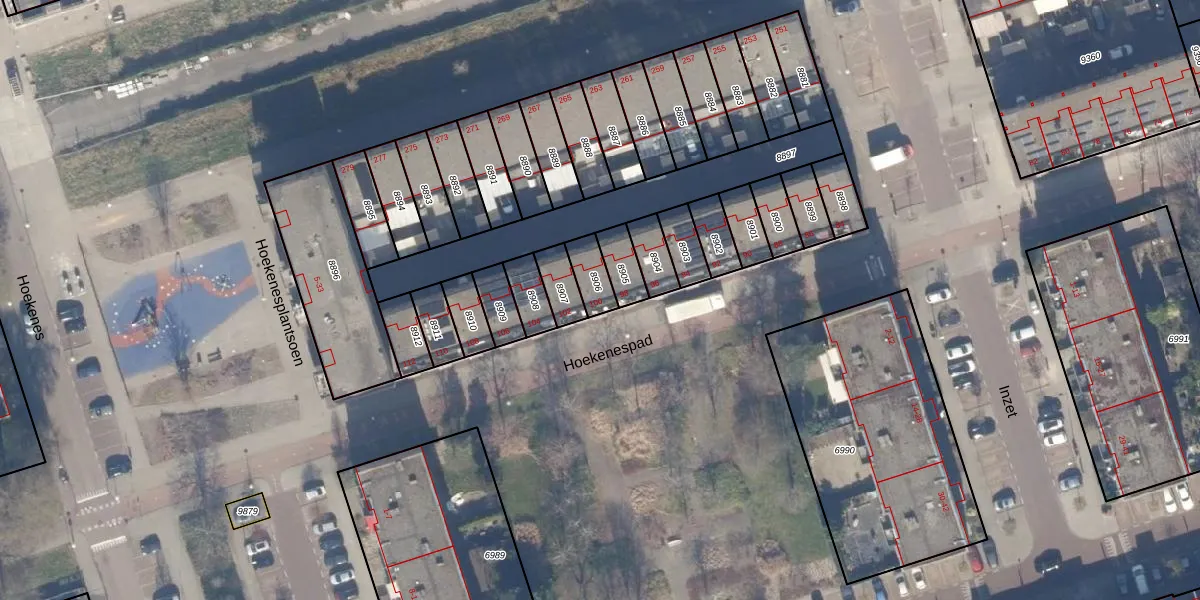 Het perceel waarop Hoekenespad 100 staat heeft een oppervlakte van 71 m². Dit is een klein perceel. De perceeloppervlakte wordt geregistreerd door het Kadaster. Gedetailleerde informatie over de maten van dit perceel kunt u vinden in het rapport Kadastrale kaart met maatvoering van Hoekenespad 100.