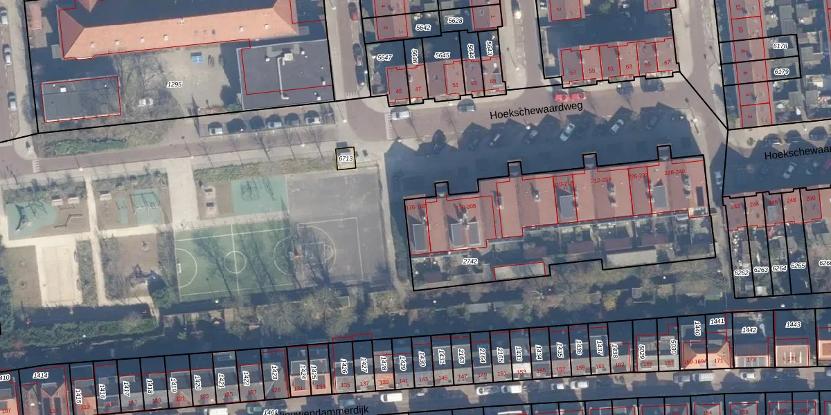 Hoekschewaardweg 176 is gelegen op kadastraal perceel ASD31AL2742. Deze kadastrale aanduiding is uniek en wordt gebruikt door het Kadaster om eigendomsrechten en andere zakelijke rechten vast te leggen. Het perceel maakt onderdeel uit van de kadastrale gemeente Amsterdam.