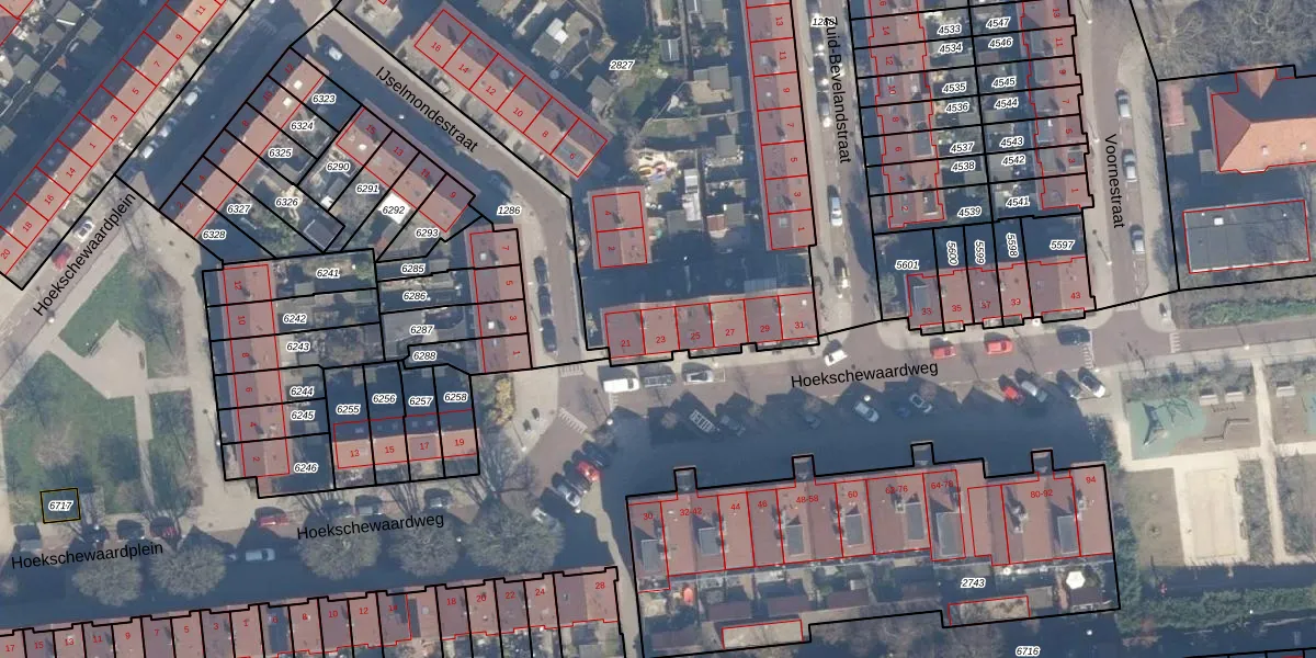 Het perceel waarop Hoekschewaardweg 23 staat heeft een oppervlakte van 3588 m². Dit is een zeer groot perceel. De perceeloppervlakte wordt geregistreerd door het Kadaster. Gedetailleerde informatie over de maten van dit perceel kunt u vinden in het rapport Kadastrale kaart met maatvoering van Hoekschewaardweg 23.