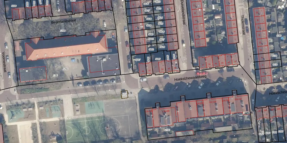 Het perceel waarop Hoekschewaardweg 45 staat heeft een oppervlakte van 132 m². Dit is een middelgroot perceel. De perceeloppervlakte wordt geregistreerd door het Kadaster. Gedetailleerde informatie over de maten van dit perceel kunt u vinden in het rapport Kadastrale kaart met maatvoering van Hoekschewaardweg 45.