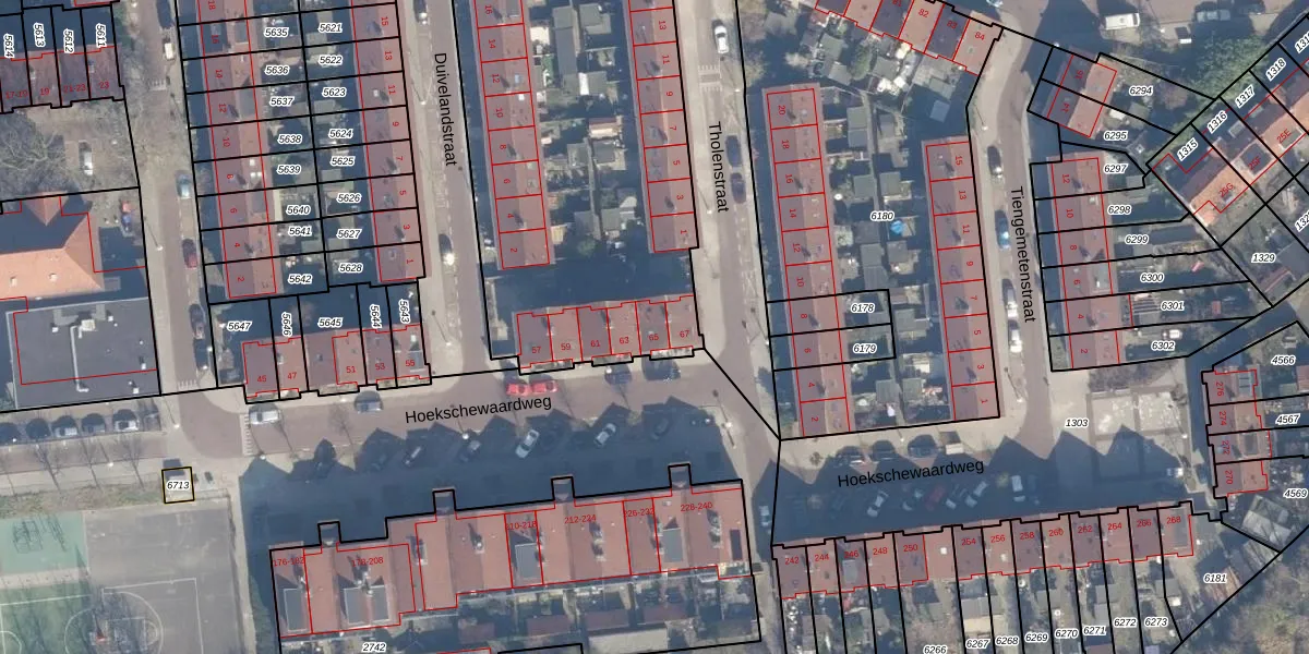 Het perceel waarop Hoekschewaardweg 65 staat heeft een oppervlakte van 3268 m². Dit is een zeer groot perceel. De perceeloppervlakte wordt geregistreerd door het Kadaster. Gedetailleerde informatie over de maten van dit perceel kunt u vinden in het rapport Kadastrale kaart met maatvoering van Hoekschewaardweg 65.