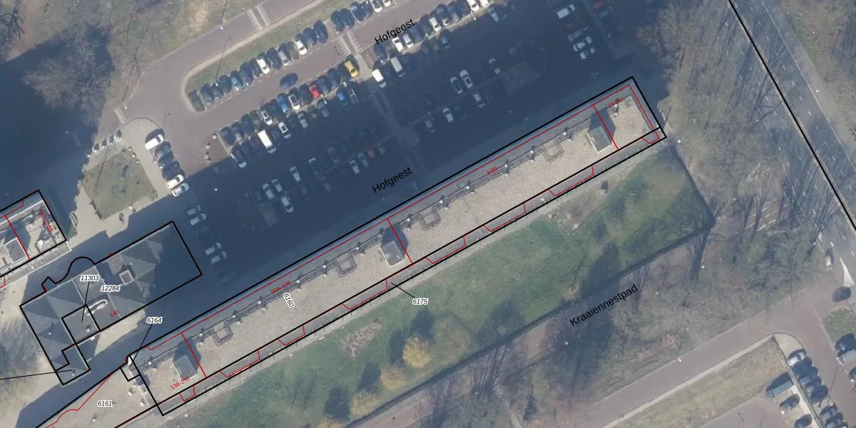 Het perceel waarop Hofgeest 71 staat heeft een oppervlakte van 1815 m². Dit is een zeer groot perceel. De perceeloppervlakte wordt geregistreerd door het Kadaster. Gedetailleerde informatie over de maten van dit perceel kunt u vinden in het rapport Kadastrale kaart met maatvoering van Hofgeest 71.