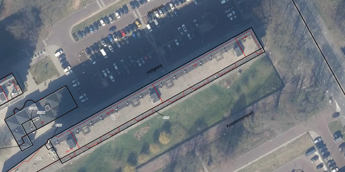 Het perceel waarop Hofgeest 83 staat heeft een oppervlakte van 1815 m². Dit is een zeer groot perceel. De perceeloppervlakte wordt geregistreerd door het Kadaster. Gedetailleerde informatie over de maten van dit perceel kunt u vinden in het rapport Kadastrale kaart met maatvoering van Hofgeest 83.