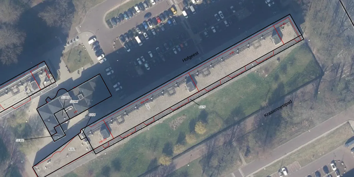 Het perceel waarop Hofgeest 90-A staat heeft een oppervlakte van 1815 m². Dit is een zeer groot perceel. De perceeloppervlakte wordt geregistreerd door het Kadaster. Gedetailleerde informatie over de maten van dit perceel kunt u vinden in het rapport Kadastrale kaart met maatvoering van Hofgeest 90-A.