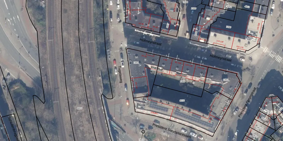 Het perceel waarop Hofmeyrstraat 2-M staat heeft een oppervlakte van 593 m². Dit is een groot perceel. De perceeloppervlakte wordt geregistreerd door het Kadaster. Gedetailleerde informatie over de maten van dit perceel kunt u vinden in het rapport Kadastrale kaart met maatvoering van Hofmeyrstraat 2-M.