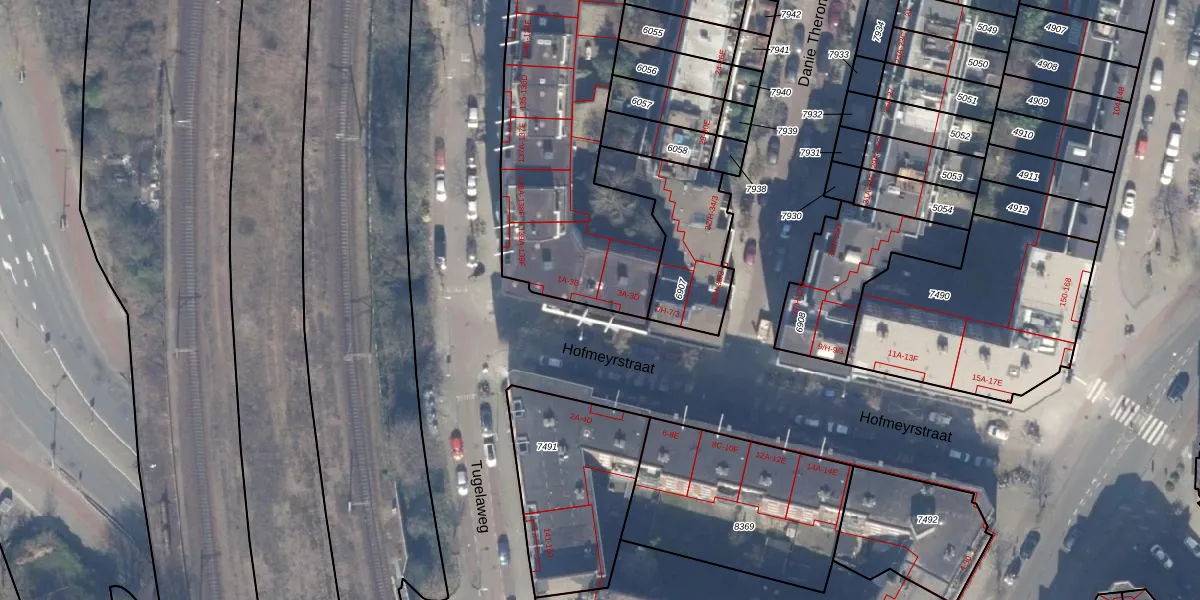 Het perceel waarop Hofmeyrstraat 3-C staat heeft een oppervlakte van 2953 m². Dit is een zeer groot perceel. De perceeloppervlakte wordt geregistreerd door het Kadaster. Gedetailleerde informatie over de maten van dit perceel kunt u vinden in het rapport Kadastrale kaart met maatvoering van Hofmeyrstraat 3-C.