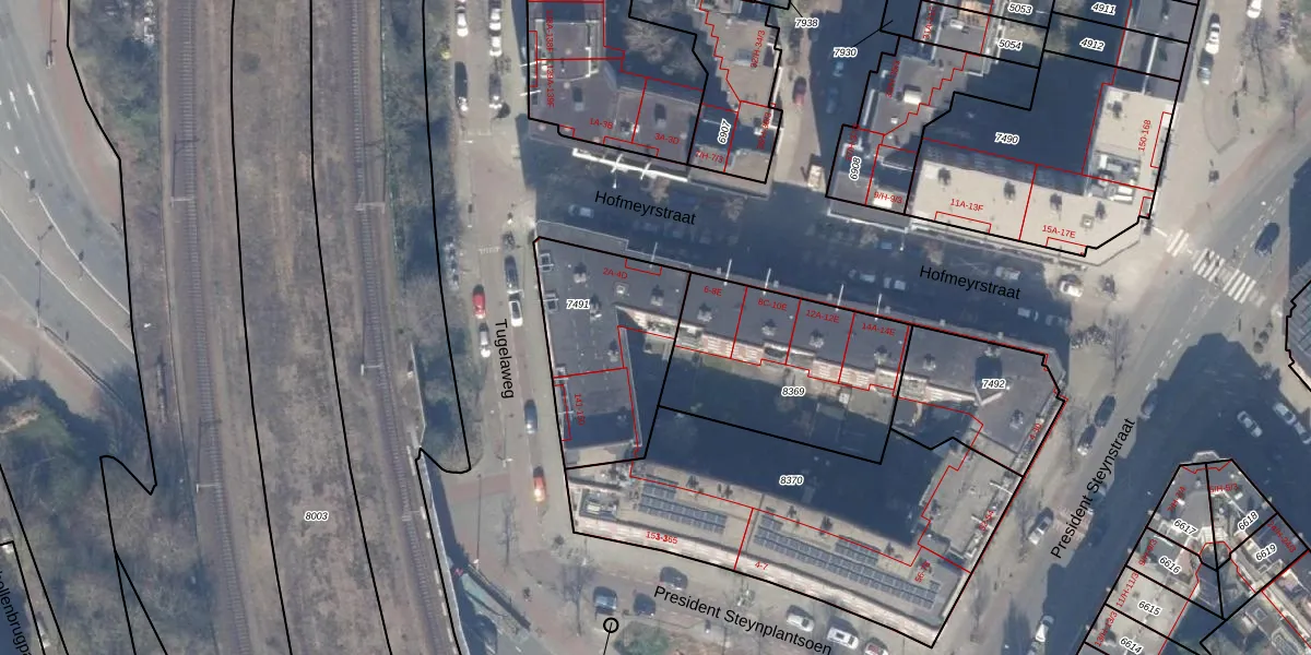 Het perceel waarop Hofmeyrstraat 4-C staat heeft een oppervlakte van 593 m². Dit is een groot perceel. De perceeloppervlakte wordt geregistreerd door het Kadaster. Gedetailleerde informatie over de maten van dit perceel kunt u vinden in het rapport Kadastrale kaart met maatvoering van Hofmeyrstraat 4-C.