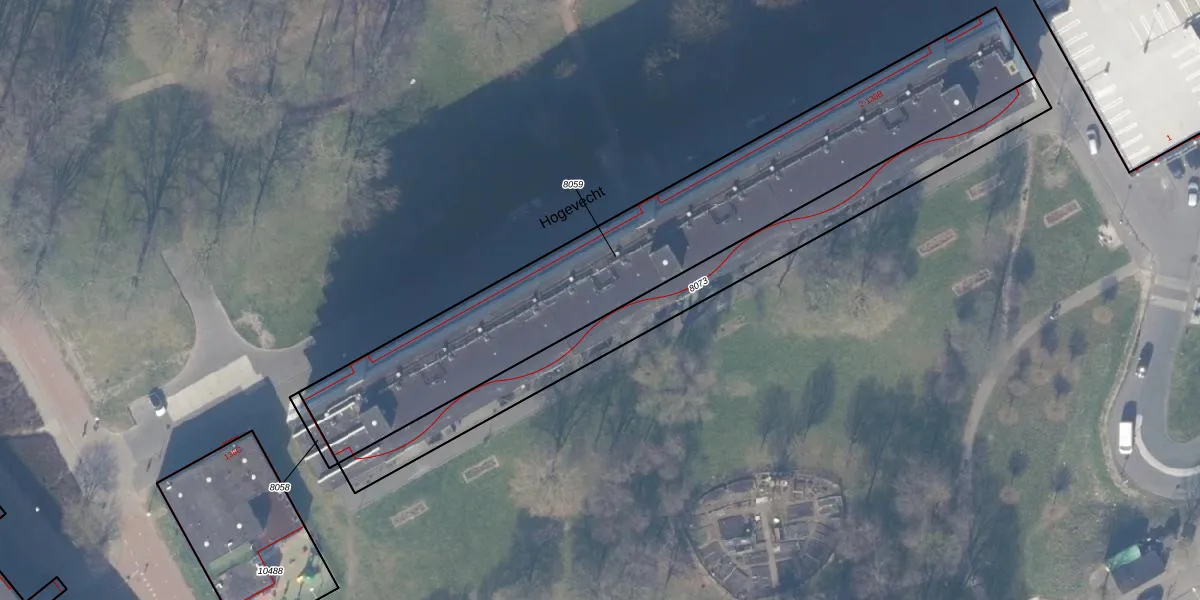 Het perceel waarop Hogevecht 100 staat heeft een oppervlakte van 1789 m². Dit is een zeer groot perceel. De perceeloppervlakte wordt geregistreerd door het Kadaster. Gedetailleerde informatie over de maten van dit perceel kunt u vinden in het rapport Kadastrale kaart met maatvoering van Hogevecht 100.