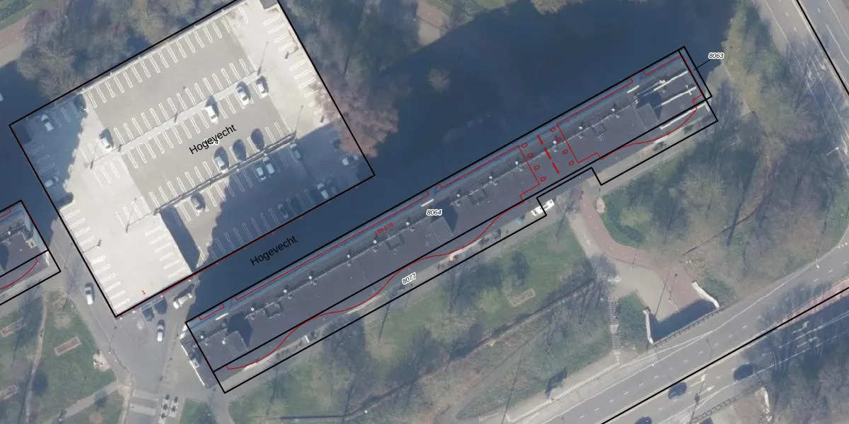 Het perceel waarop Hogevecht 201 staat heeft een oppervlakte van 1784 m². Dit is een zeer groot perceel. De perceeloppervlakte wordt geregistreerd door het Kadaster. Gedetailleerde informatie over de maten van dit perceel kunt u vinden in het rapport Kadastrale kaart met maatvoering van Hogevecht 201.