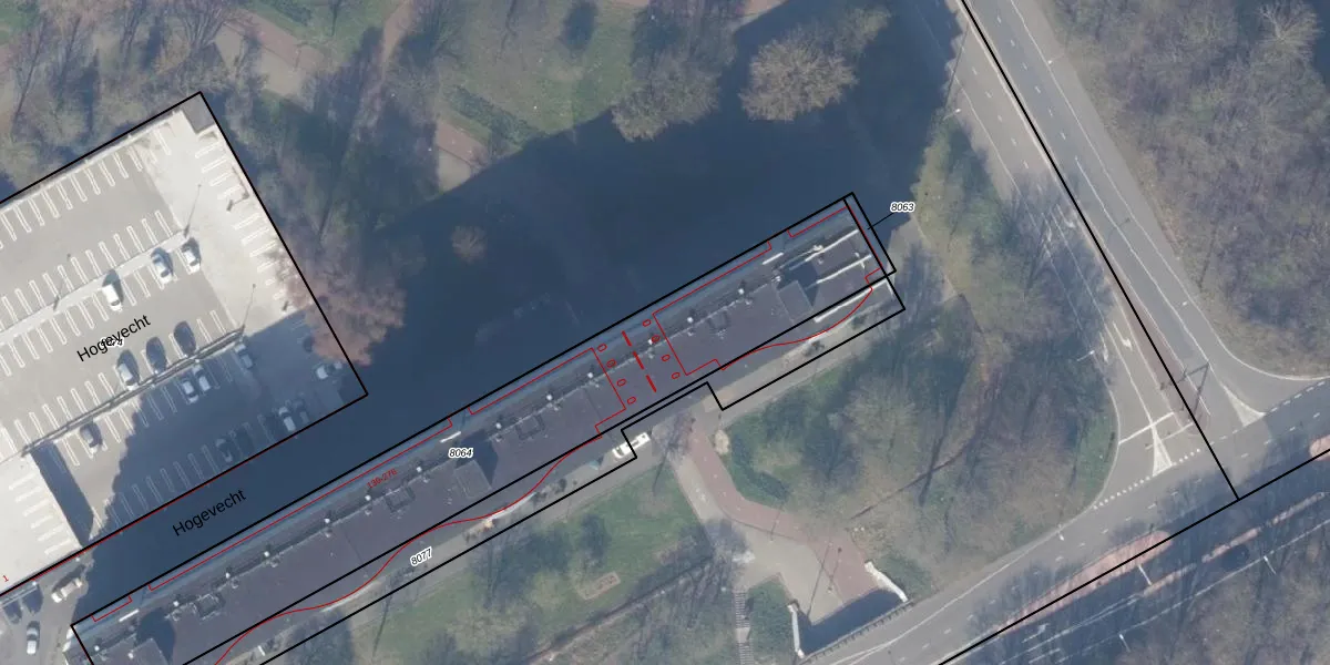 Het perceel waarop Hogevecht 242 staat heeft een oppervlakte van 1784 m². Dit is een zeer groot perceel. De perceeloppervlakte wordt geregistreerd door het Kadaster. Gedetailleerde informatie over de maten van dit perceel kunt u vinden in het rapport Kadastrale kaart met maatvoering van Hogevecht 242.