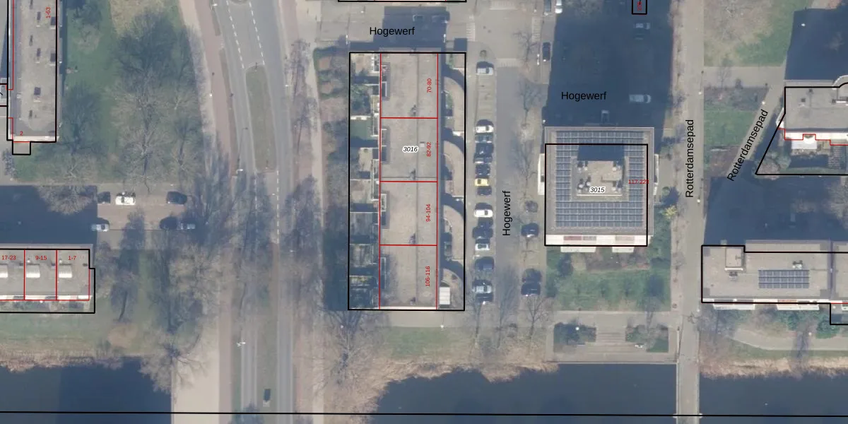 Hogewerf 100 is gelegen op kadastraal perceel ASD30AK3016. Deze kadastrale aanduiding is uniek en wordt gebruikt door het Kadaster om eigendomsrechten en andere zakelijke rechten vast te leggen. Het perceel maakt onderdeel uit van de kadastrale gemeente Amsterdam.