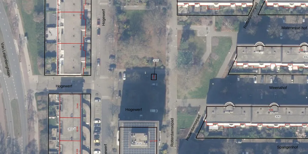 Gebruik de zoekbalk of klik op een perceel voor informatie over de adressen binnen dit perceel.