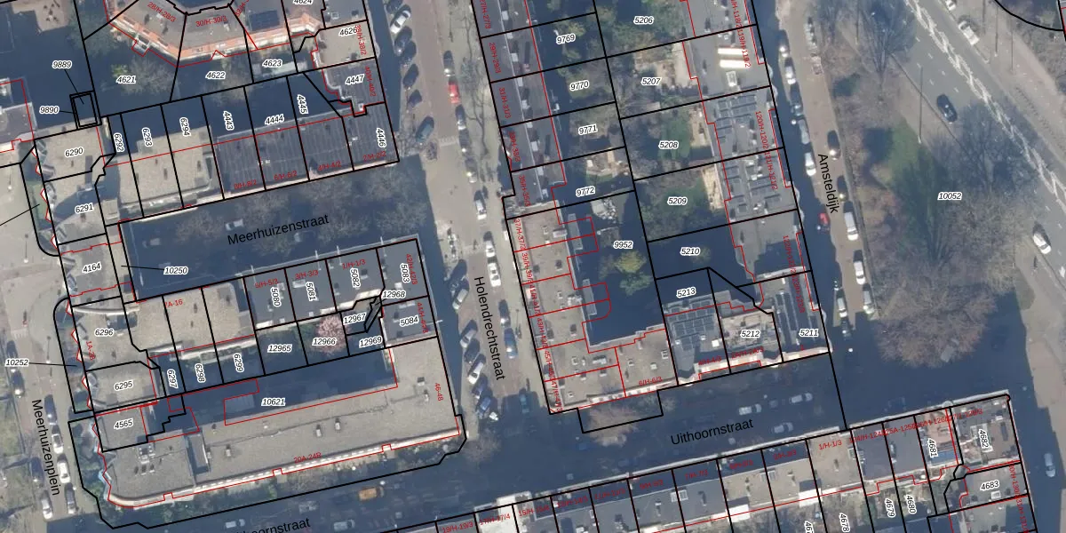 Het perceel waarop Holendrechtstraat 39-2 staat heeft een oppervlakte van 996 m². Dit is een groot perceel. De perceeloppervlakte wordt geregistreerd door het Kadaster. Gedetailleerde informatie over de maten van dit perceel kunt u vinden in het rapport Kadastrale kaart met maatvoering van Holendrechtstraat 39-2.